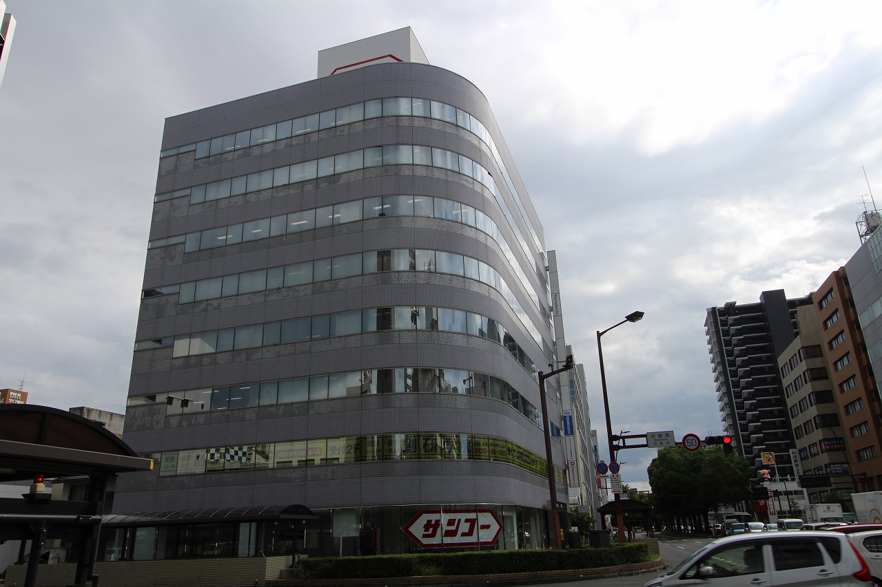 中央通り沿いのR型の外観が特徴の8階建て5F部分 20.93坪のオフィス物件です。敷地内に立体駐車場が用意されています。ことでん瓦町駅まで徒歩10分。